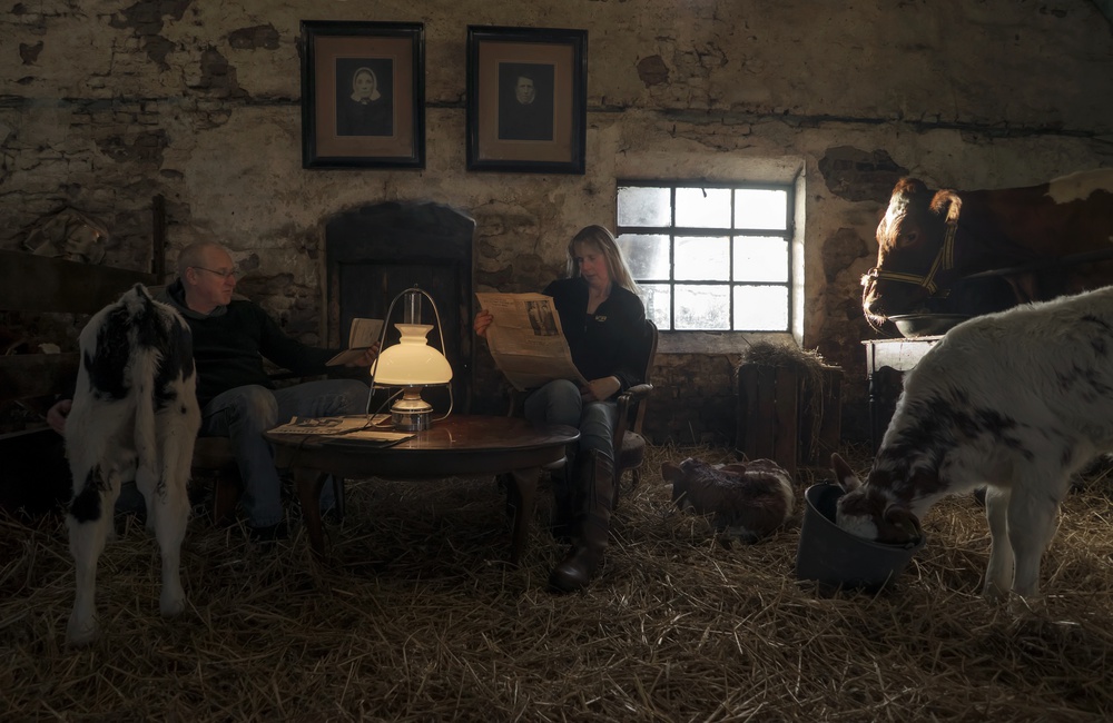 About a year ago, I started something new for me: pictures of farmers with their family in the barn or in a mud pool. I want to picture them in way as if it looks like that they are always relaxing (i.e. reading) among their animals.