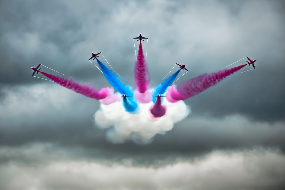 4. Technically, this is a difficult shot to take. First, one has to know where the planes make their turns during a display and get to that position. Next, the planes are moving pretty quickly but I’m still looking for pin-sharp focus. A shutter speed of at least 1/1000s is required at an aperture closed down a couple of stops for maximum sharpness. The distance of the planes means a focal length of at least 400mm and ideally more. On a Nikon 80-400mm f5.6/6.3 lens with 1.4x teleconverter, this means shooting at f11. I don’t shoot at ISO sensitivities greater than 800 as the noise in the sky is too great and with typical UK summer weather, there just wasn’t enough light. Exposure needs to be for the light on the plane, not the sky but any cloud detail needs to be retained too.