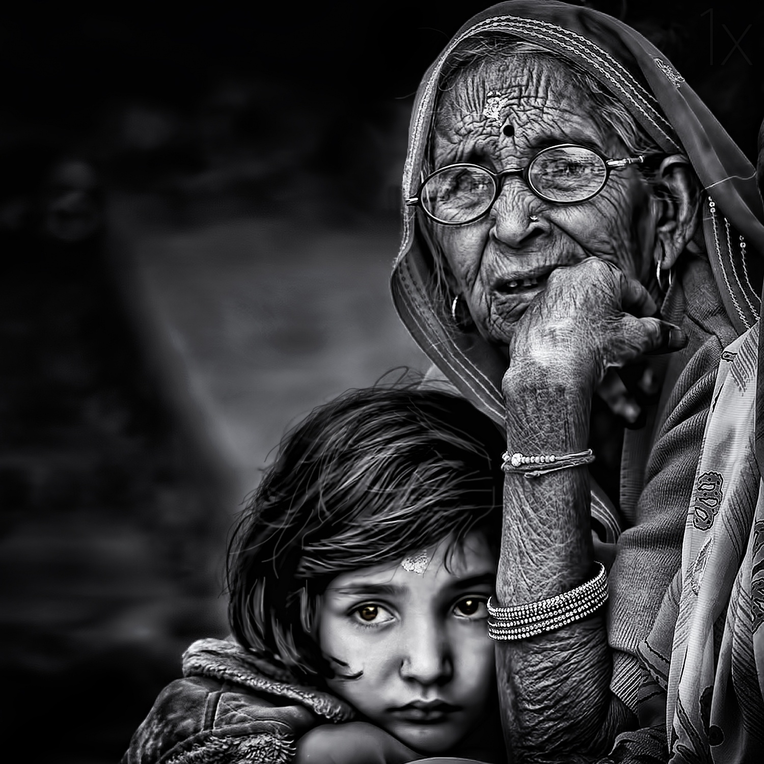 – the experience and characteristic lines in the older person’s face or hands compared to the smoothness, innocence and vulnerability of the younger face can elicit all kinds of meanings and responses