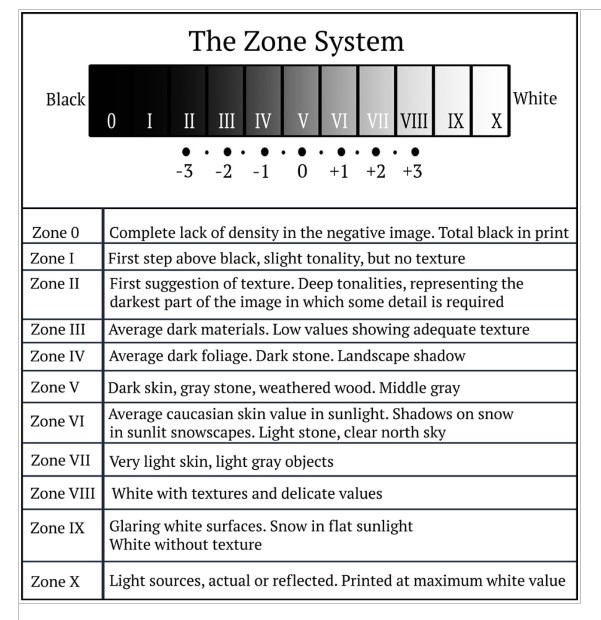 Ansel Adams created the Zone System for grey scales from 0- For Black to 10 for white